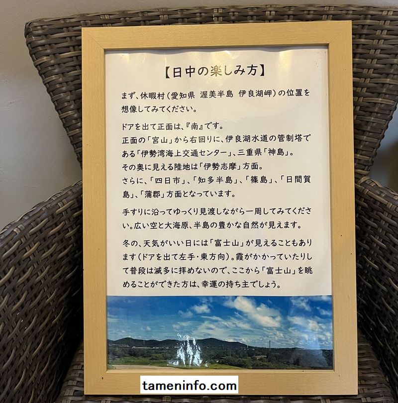 宿の案内板には、「冬の晴れた日には富士山が見えることもある」との記載がありました。