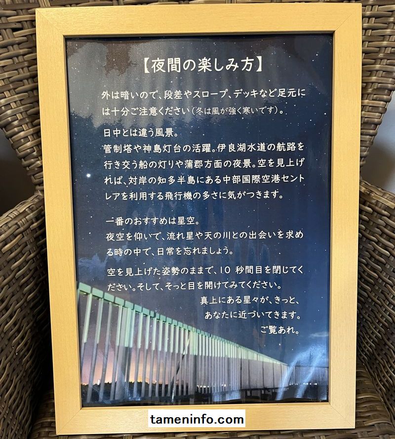 遠くには三重県の神島や伊勢湾フェリーが見えることもあるそうで、時間によって空の色や海のきらめきが変わっていくのをただ眺めているだけで、心がほぐれる癒しの場所。