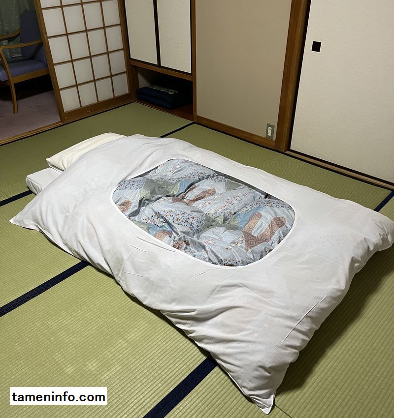 夕食に行っている間に、畳にしっかりと敷かれたお布団が登場。